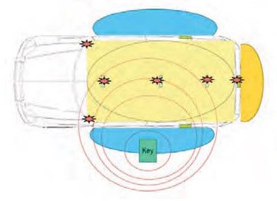 - For keyless operation, a valid key must be detected within one meter of the vehicle (six antennas). The vehicle is unlocked as soon as the proximity sensors detect that someone with a valid key is approaching a door handle.