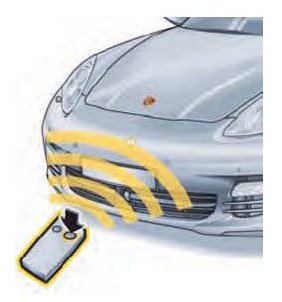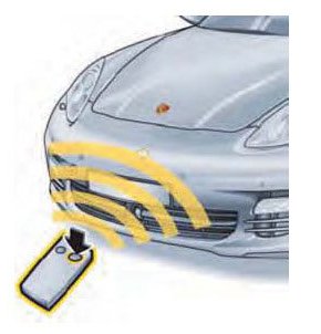 The familiar key functions - remote control, central locking and operation via the ignition lock as back-up - are also retained. On the vehicle side, the intelligence necessary to perform the various functions is integrated into the front-end electrics control unit at the front. Proximity sensors have been integrated into the four outer door handles and in the area around the external antennas on the door sills to facilitate keyless access (Porsche Entry).