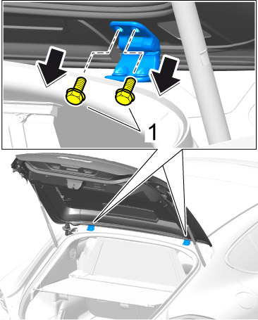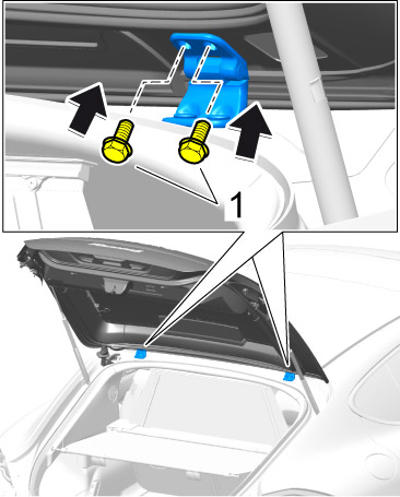 6. Detach pneumatic spring at the top on both sides of the vehicle (another person is required to prevent the rear lid from closing accidentally). -> 559319 Removing and installing rear gas spring - section on "Detaching" Service and Repair