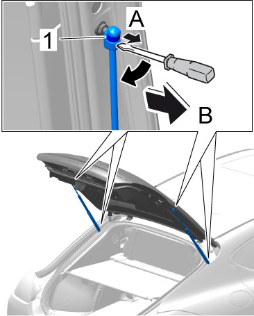 -> Secure the lid to prevent it from closing accidentally following removal of the gas-filled shock absorbers.