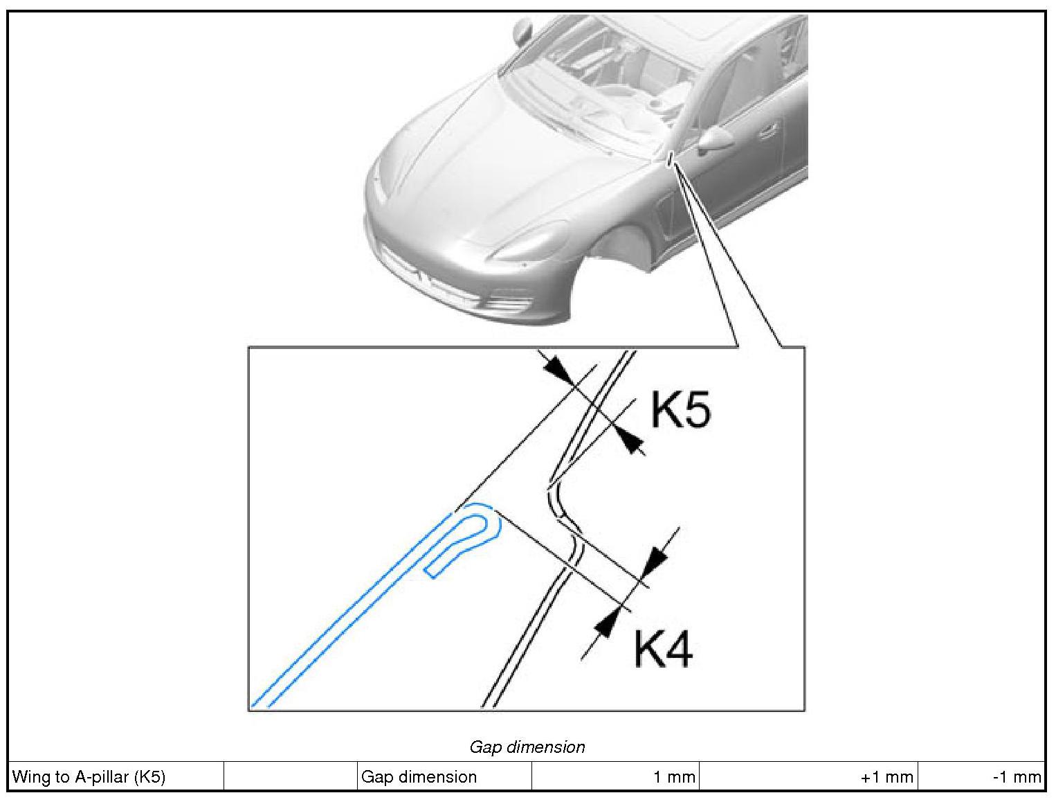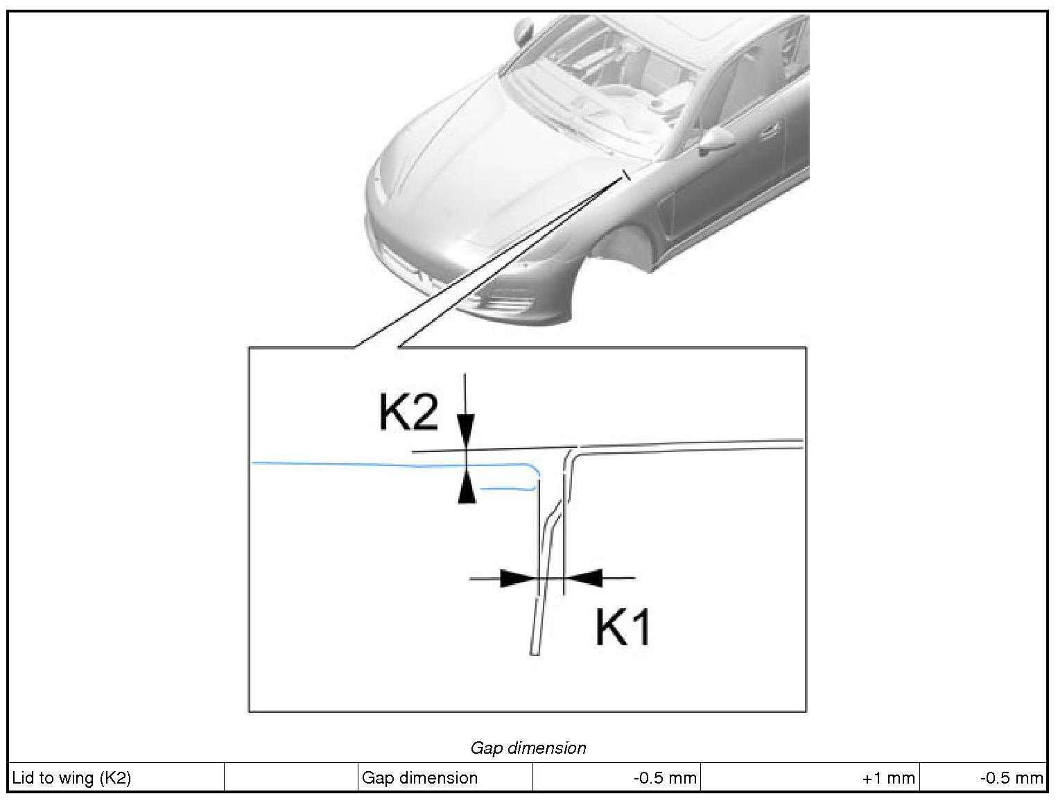 1.1. Set gap dimensions by moving the wing. -> 505519 Removing and installing wing - section on "Technical values"