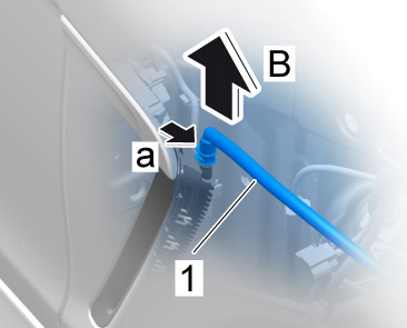 6.2. Release locking mechanism on grommet at the air grille -a- and remove grommet. -B-