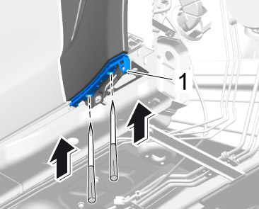 2.2. Remove expansion rivet -1- from the engine compartment side.