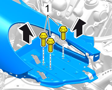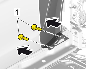2. Tighten fastening screws for wing to the specified tightening torque -> Tightening torque: 9.7 Nm (7.5 ftlb.)+/-1 Nm (+/-0.5 ftlb.) and -> Tightening torque: 5.5 Nm (4 ftlb.)+/-0.5 Nm (+/-0.5 ftlb.).