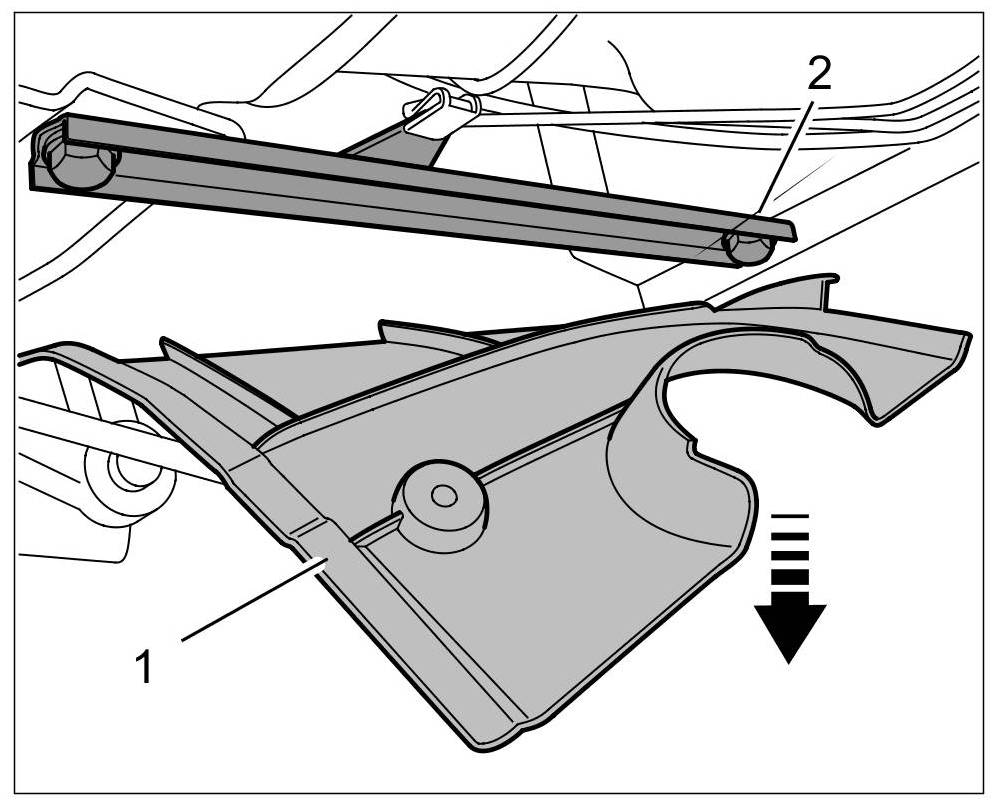 1. Detach rear section of front wheel housing liner -1- on both sides.