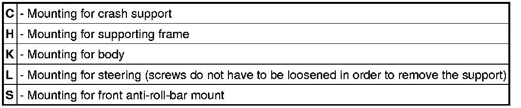 The anti-roll bar must be positioned before tightening the fastening screws of the anti-roll bar support (=front-axle support) so that the highest point of the anti-roll bar is positioned at a distance from the frame support (not the fold!) of -Y- or -Z-.