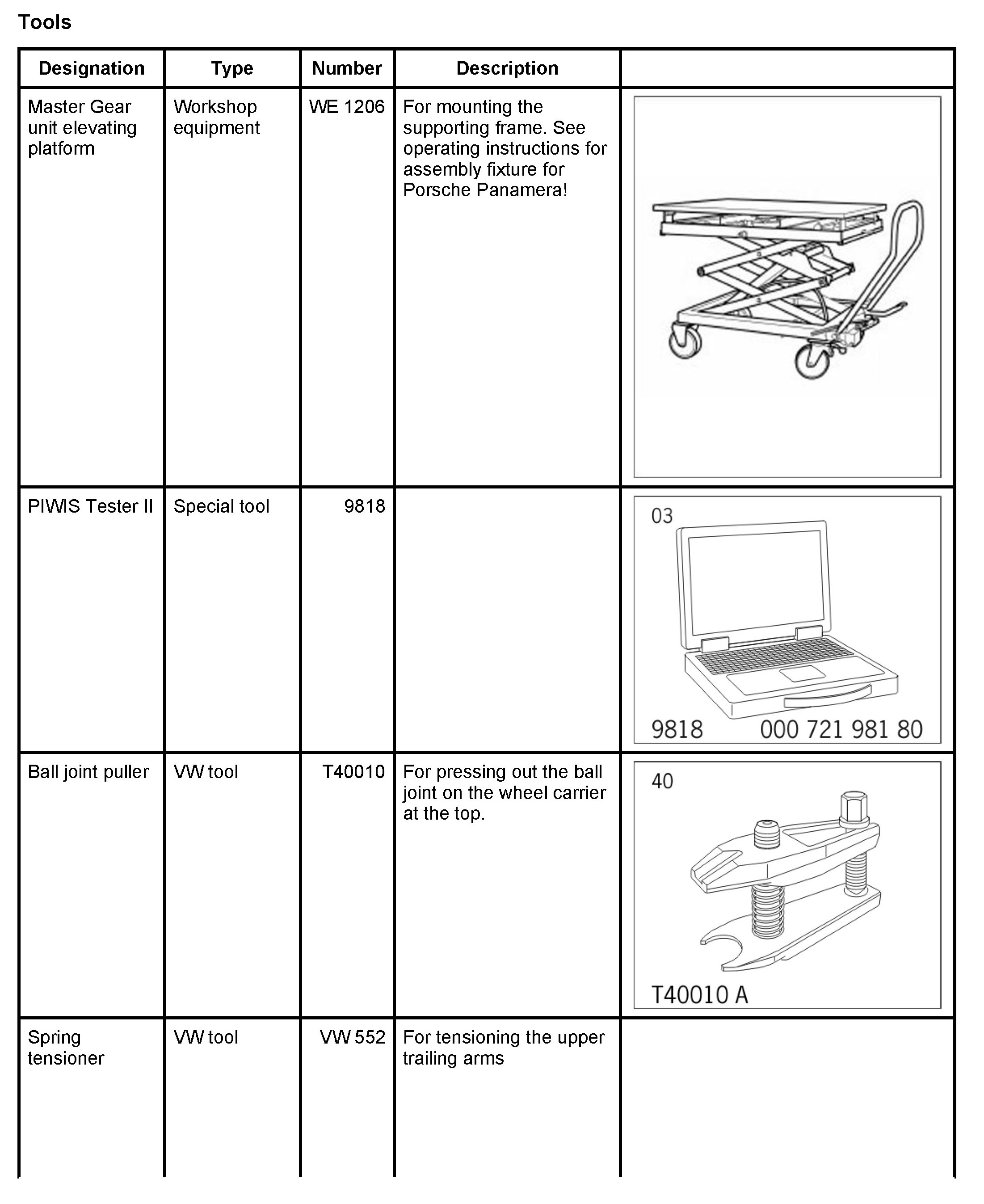 Secure the upper trailing arms using the spring tensioner VW 552 before removing the elevating platform.