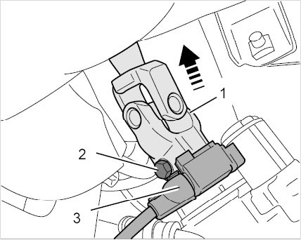 10.4. Slide universal joint -1- and lower part of steering column upwards.