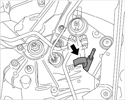 17.1. Remove the front holder for the power-steering pressure line.