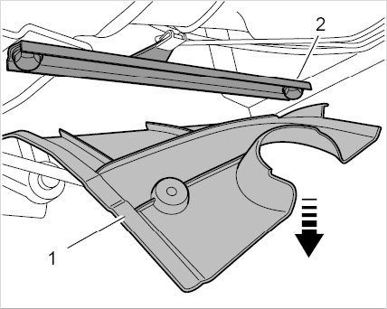 Removing transverse struts (right side with wheel housing liner)