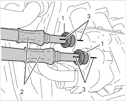 8. On all-wheel-drive vehicles, remove the drive shafts at the transmission side and set them down carefully. Use a protective tube (shop-made) if necessary so as not to damage the drive shaft.