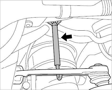 4. Fit connecting link on the spring strut -arrow- at both sides.