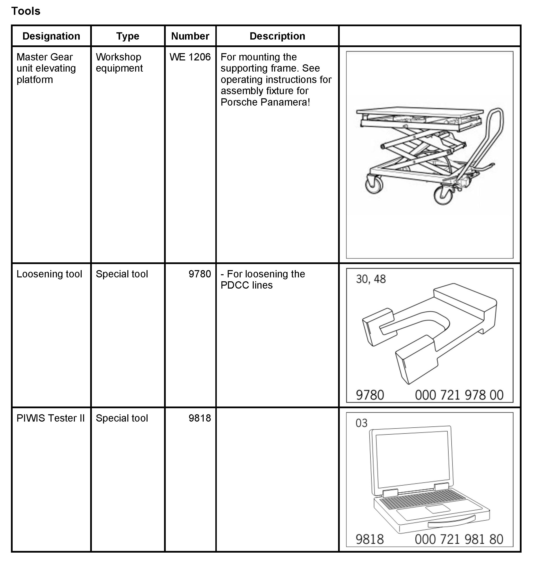 * The vehicle position is reached at the front axle with air suspension by bleeding the respective air spring using the Porsche System Tester and carefully lifting the respective wheel bearing housing.