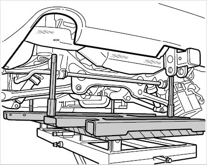 9. Mark the position of the rear axle housing (chassis subframe) on the body (to facilitate assembly).