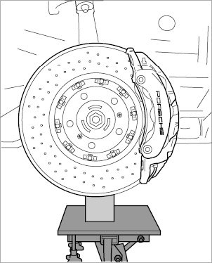 3. Release brake caliper (do not open the brake system!) and hang it at a suitable position in the wheel housing.