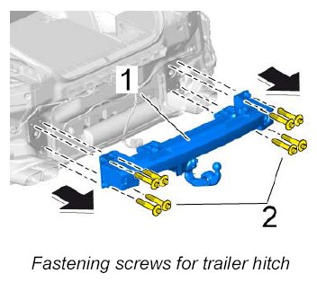 INFORMATION: A helper is needed for removing and installing the trailer hitch because of the weight.
