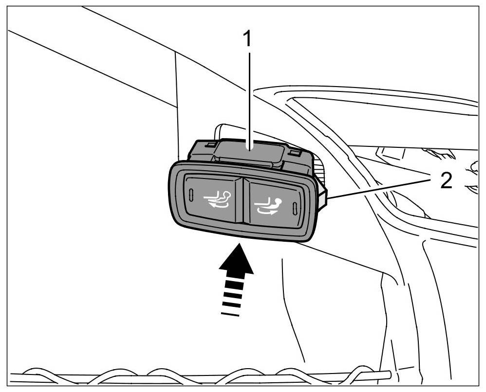 2. Press the locking lug -2- through the opening in the trim panel and slide out the switch -1-.