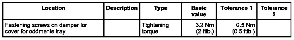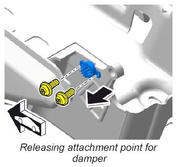 1. Unscrew fastening screws for damper for cover for oddments tray.
