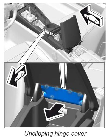 1. Unclip cover above hinge.