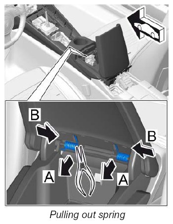 2. Lift end piece of springs -A- and pull off spring -B- .