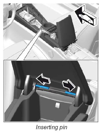2. Insert pin into hinge for oddments tray.