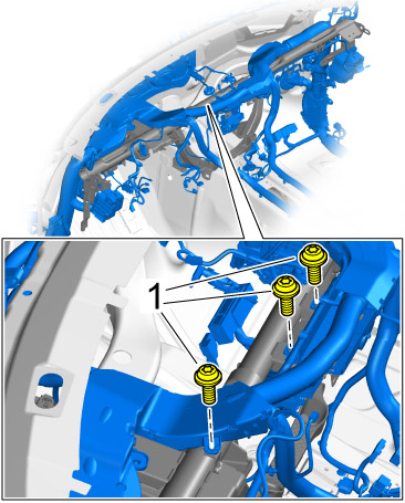 17. Screw in fastening screws -1- on the cable duct at the passenger's side.