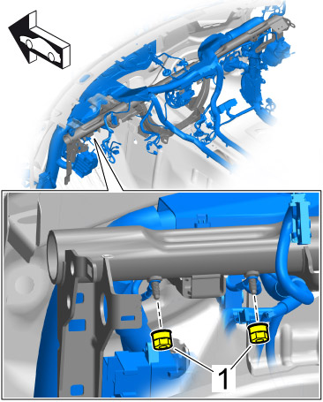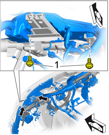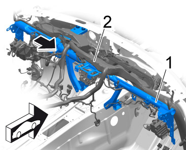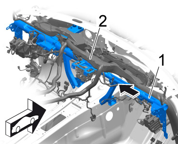 20. Disconnect dashboard support -1- from the wire harness -2-.