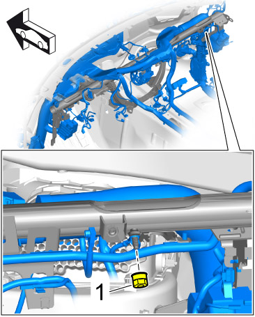 15. Clip in wire harness along the dashboard support -arrow-.