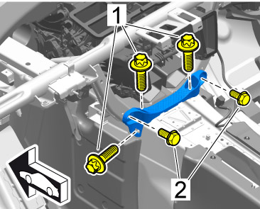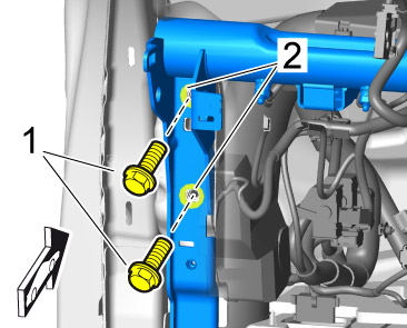 8. Screw holder onto the dashboard support with fastening screws -2-. => Tightening torque: 4.6 Nm (3.5 ftlb.)