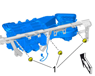 6. Screw in fastening nuts -1- on the heating/fresh-air unit.=> Tightening torque: 8.0 Nm (6 ftlb.)