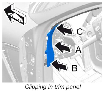 2.4. Clip trim panel into the A-pillar trim -C- .