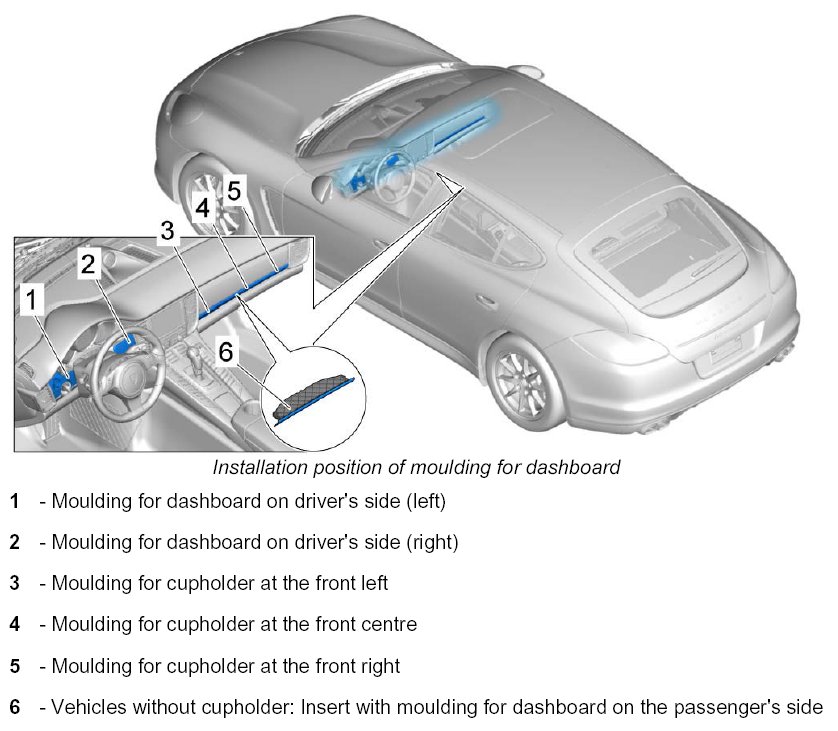 INFORMATION: Only installed in vehicles without a cup holder. The insert with moulding can only be installed as a complete unit.