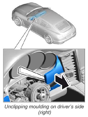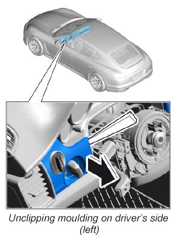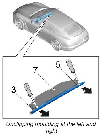 1. Insert a plastic wedge under the moulding, unclip it carefully and remove it towards the rear.