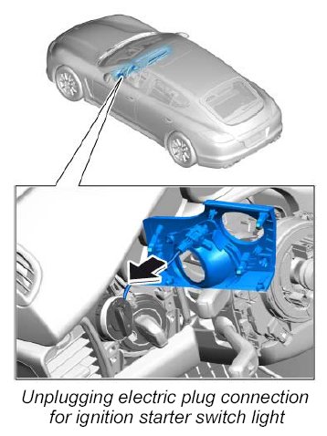 1. Plug in electric plug connection for the ignition starter switch light.