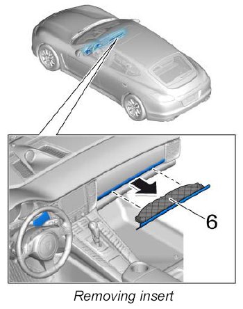 INFORMATION: Only installed in vehicles without a cup holder. The insert with moulding can only be removed as a complete unit.