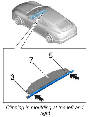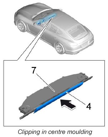 2. Clip in centre moulding -4- until it engages securely.