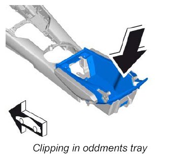 2. Clip in oddments tray.