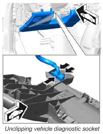 5. Release vehicle diagnostic socket -arrow- and pull it off.