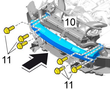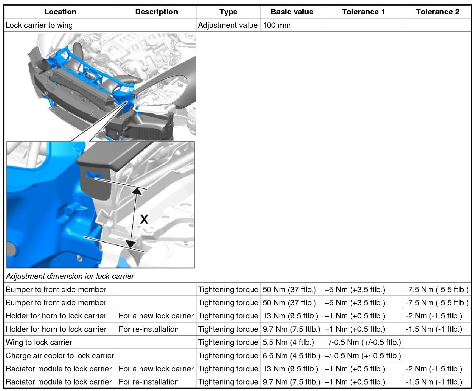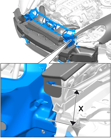 - To avoid damage to the wing, the radiator module must be secured at the same height before the bumper is removed.