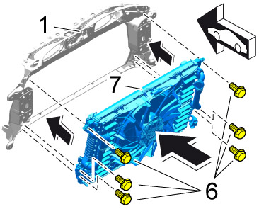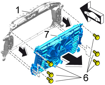 1.2. Disconnect radiator module -7- from the lock carrier -1- and press it back onto the supporting frame.