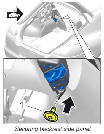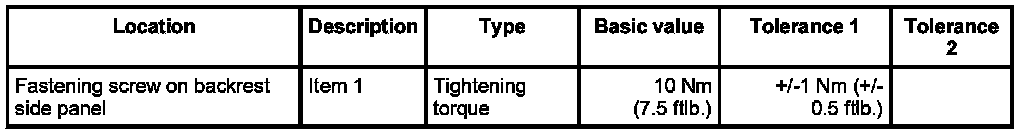 - Tightening torque: 10 Nm (7.5 ftlb.)±1 Nm (±0.5 ftlb.) on backrest side panel.