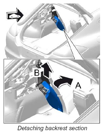 4. Swivel backrest section forward -arrow A- and unclip it in an upward direction -arrow B- .