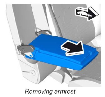 4. Press in the bolts -arrows- on the armrest at the left and right at the same time using a suitable tool.