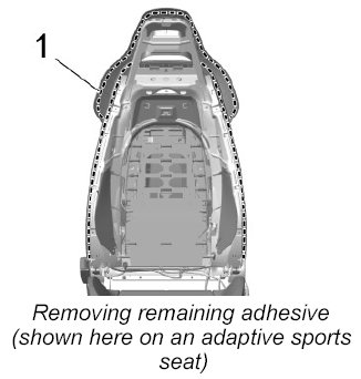 2. Remove remaining adhesive -1- from the backrest frame.