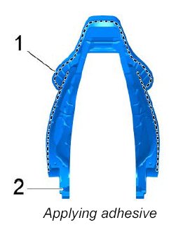 1. Apply adhesive to the marked area -1- of the padding -2- .