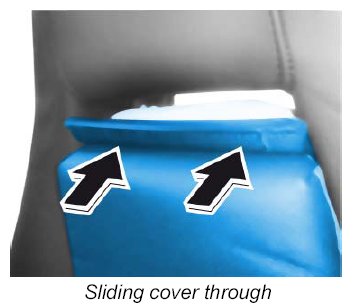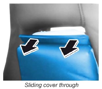 2. Guide the cover through towards the front under the headrest -arrows- .