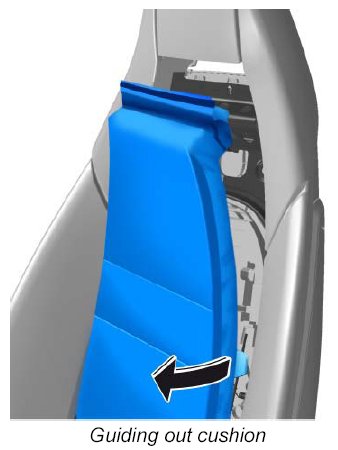 4. Guide the backrest cushion out of the guide in the side bolsters on both sides -arrow- .