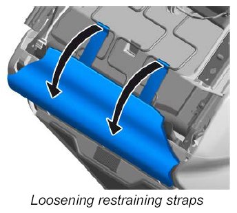 7. Loosen the two restraining straps on the rear of the seat from underneath -arrows- .