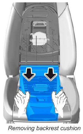 10. Move backrest cushion and cover forward off the seat and remove them -arrows- .