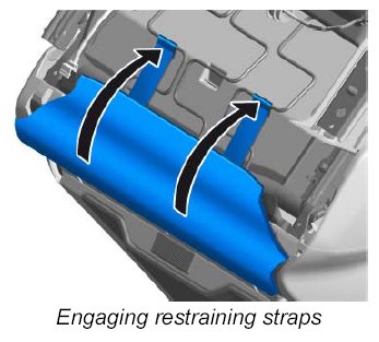 3. Engage the two restraining straps on the rear of the seat from underneath -arrows- .